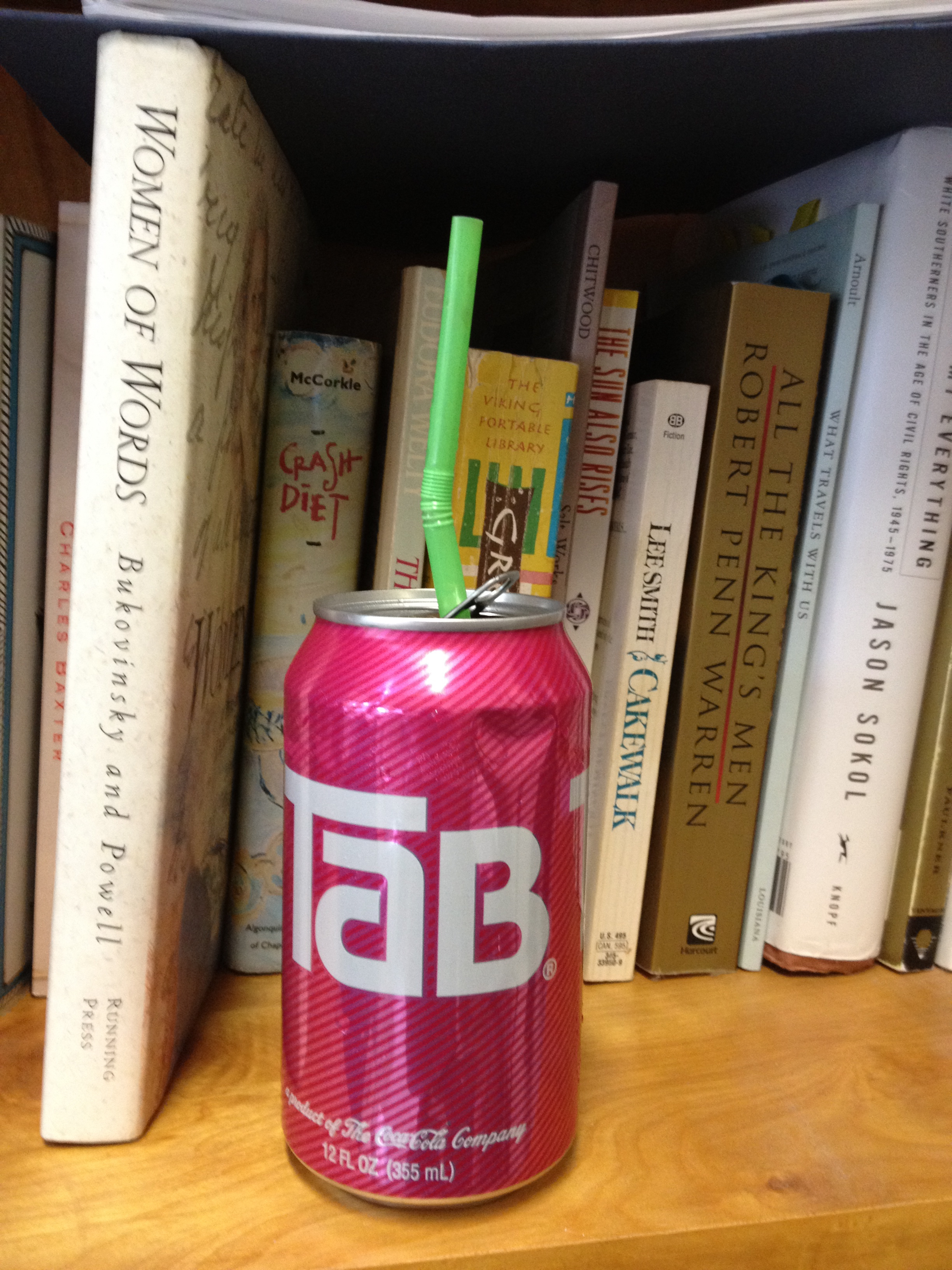 A few years ago I taught a fiction class at NCSU. One of my students knew a girl that liked Tab. This came as a surprise to him and to me as college-students are not the key demographic that the Coca-Cola company is going after when it puts those chemicals and that coloring into cans. Anyway, she was known to get wired on the best diet drink ever and then start pounding the keys of her computer to create whatever paper or project was due. She called it “Tabbing.”